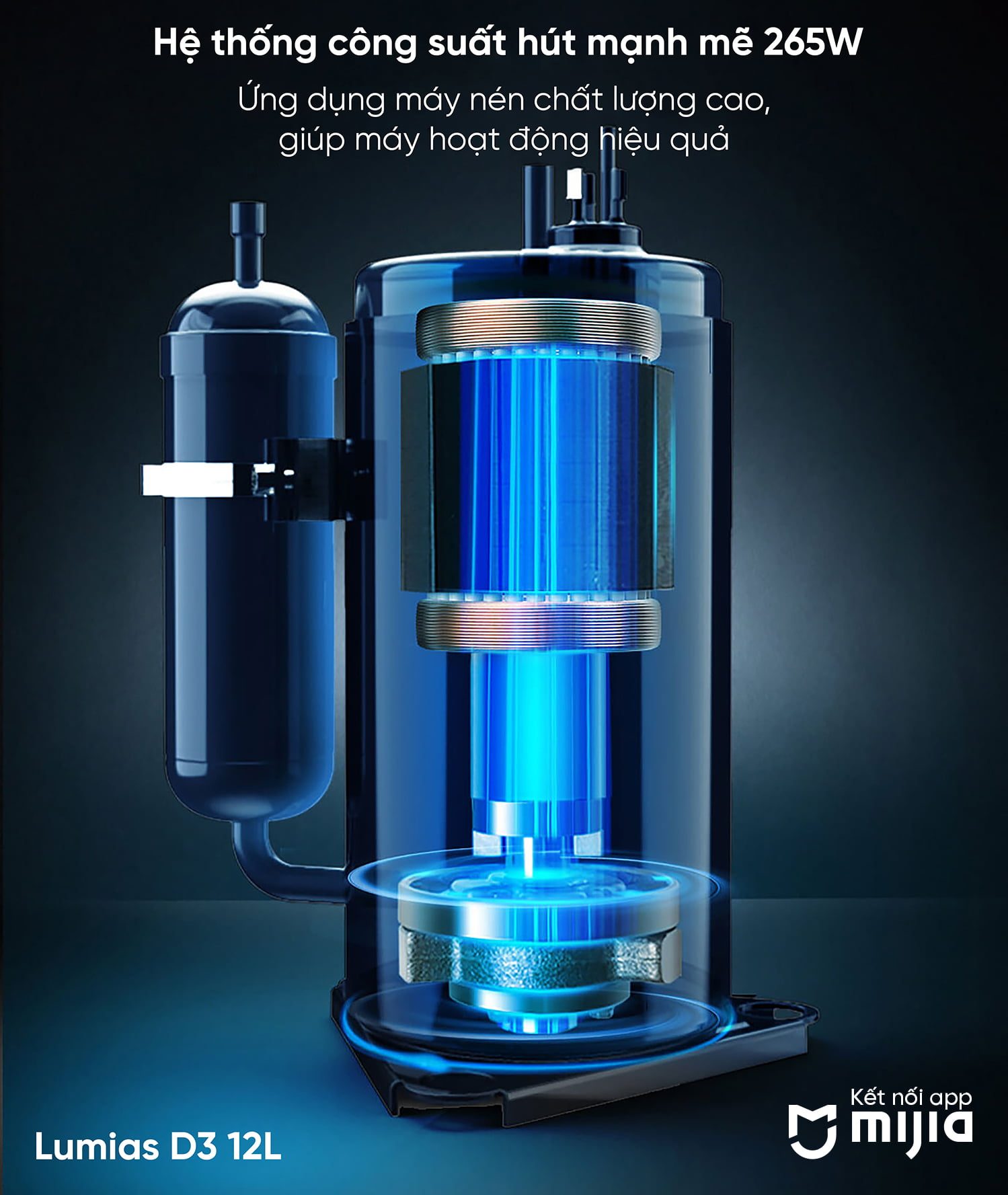 Máy hút ẩm Lumias D3 12L vận hành với công suất mạnh mẽ