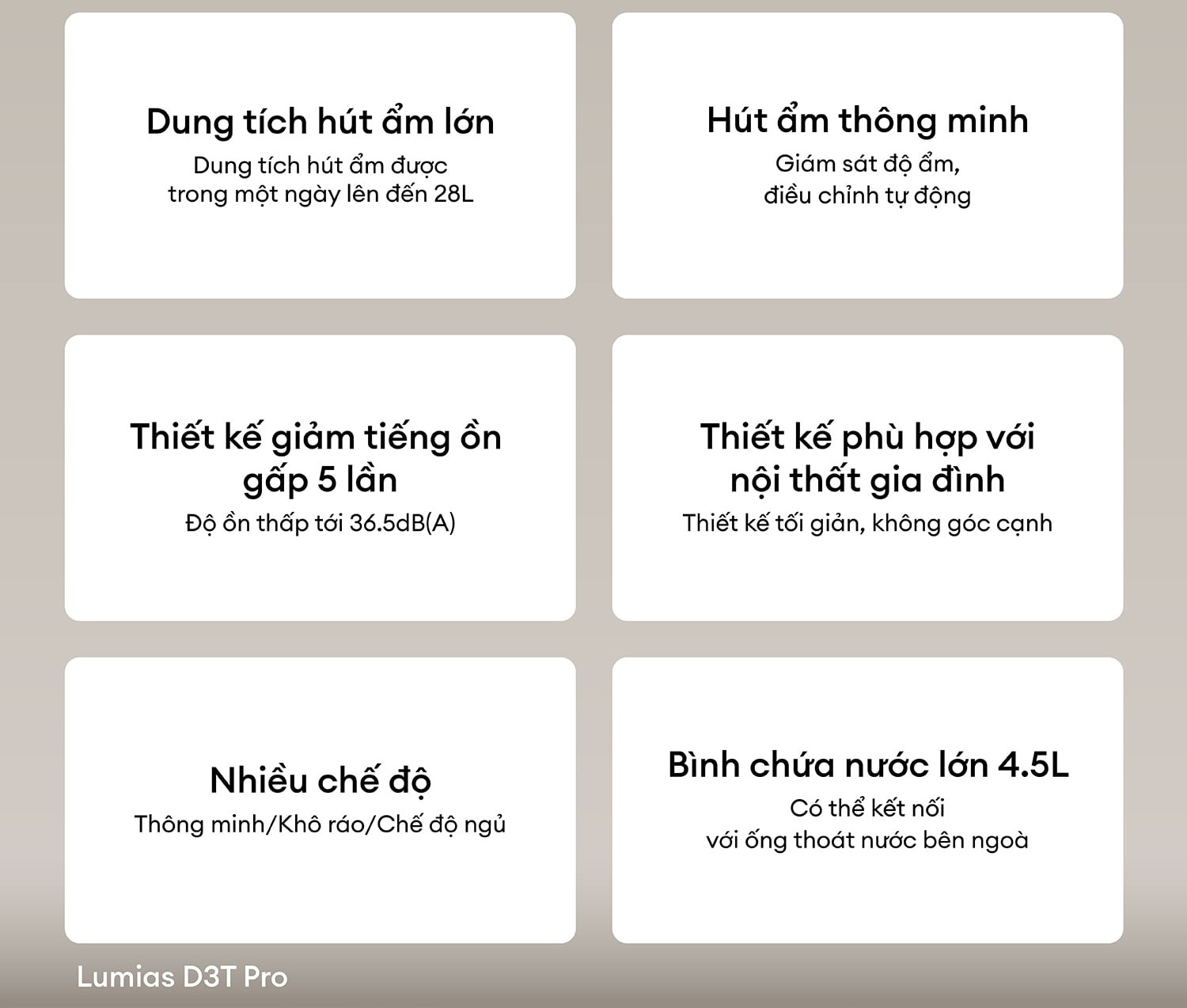 Lumias D3T Pro được trang bị 3 chế độ hút ẩm hiệu quả