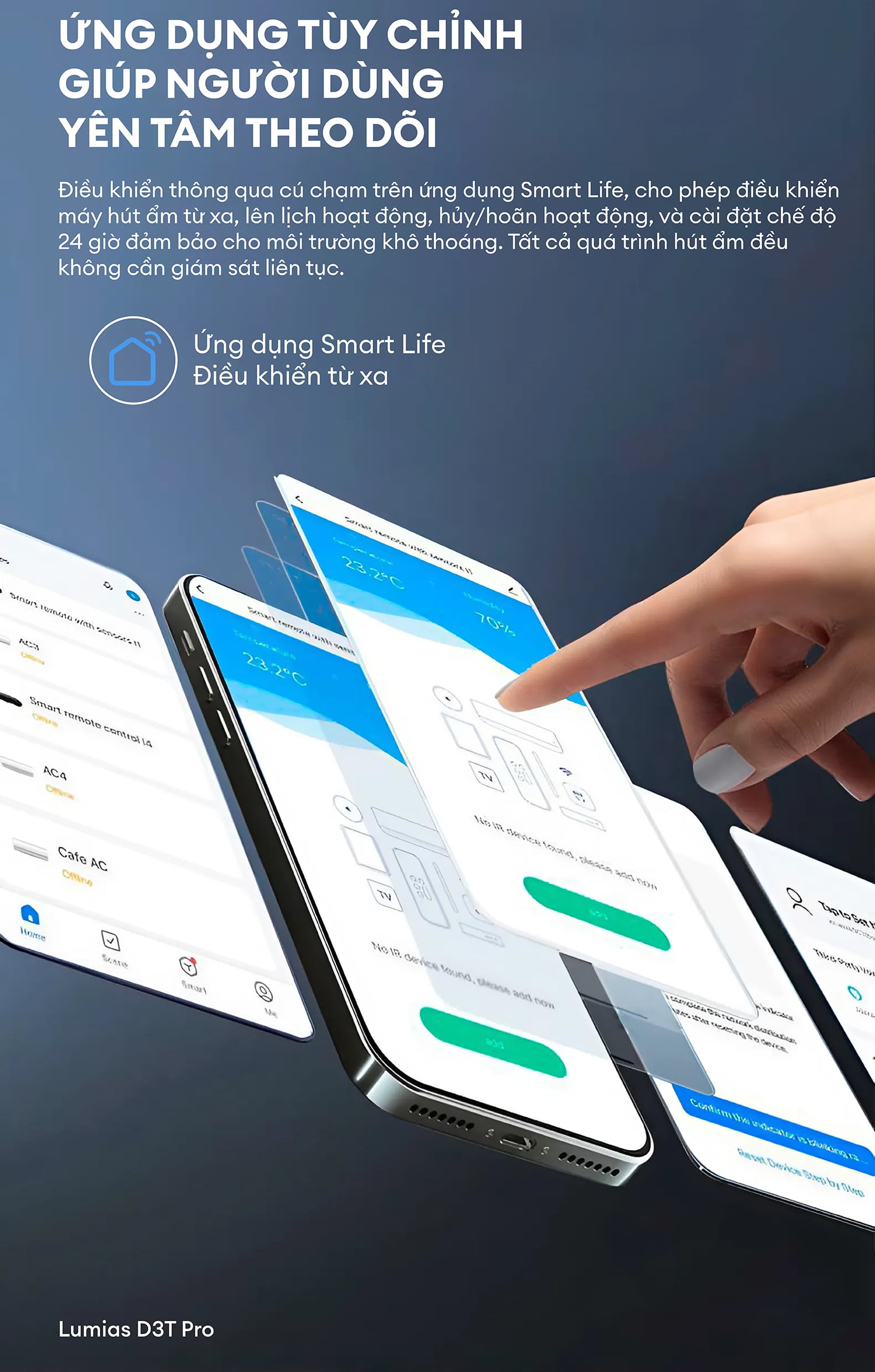 Máy hút ẩm Lumias D3T Pro là một con sen chính hiệu cho gia đình hiện đại thời nay. Điểm đặc biệt của em này là tích hợp wifi và ứng dụng điều khiển Smart Life giúp người dùng dễ dàng quản lý từ xa. D3T Pro cũng được trang bị động cơ giảm tiếng ồn và nhiều tính năng an toàn để bảo vệ người dùng.