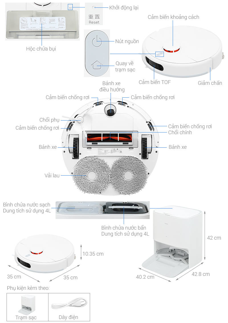 - Hộp nước lớn 4000ml: Với dung tích lớn, hộp nước của robot cho phép lau nhà trong thời gian dài mà không cần phải đổ nước nhiều lần, tiết kiệm thời gian và công sức của người dùng.